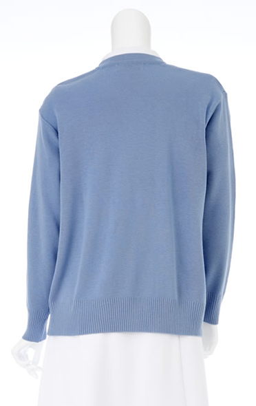 JT-2350/カーディガン ネイビー、ブルー、ピンク ¥5,800(本体価格) ベーシックなVネックのカーディガンでどんなシルエットのナースウェアにも無理なく合わせられるシンプルなデザインです。