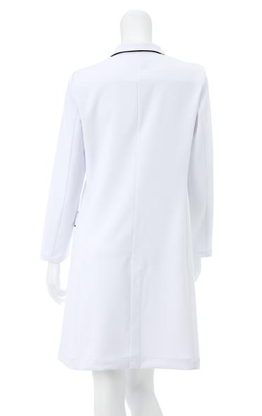 FT-4550/女子シングル診察衣 Tネイビー ¥8,700(本体価格) ストレッチ性が非常に優れた素材を使用しておりこれまでに無い快適な着心地です。シルエットは立体的で高級感があり、ネイビーの細いラインが全体を引き締めています。 ●左胸、両腰ポケット
