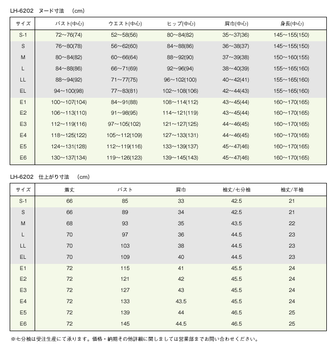 LH-6202/女子上衣は、 きつめ 標準 ゆとり サイズです。