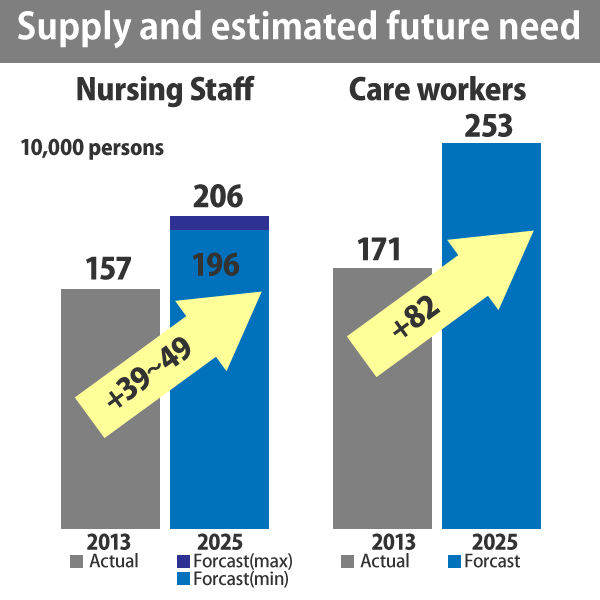 The number of nursing and care staff will increase stably, as demand of improving social security.