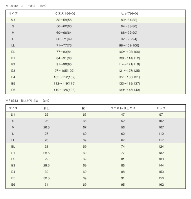 サイズ表のグレー部分は、レディメイドサイズ(備蓄品)です。