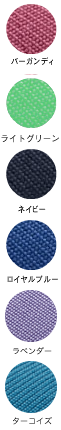 ①さらさらタッチのポリエステル織物素材です。②濃色でも他のポリステルに移染しにくい素材です。③特殊仕上により吸水、防汚効果を付加しています。④業務用洗濯にも耐えうる形態安定素材です。
