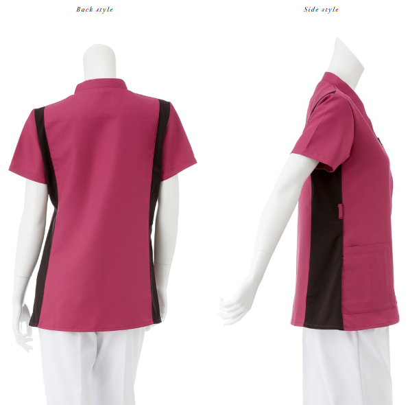 RT-5072/チュニック ディープピンク、ネイビー、 バーガンディ、ライトグリーン、 ロイヤルブルー、ラベンダー、ターコイズ ¥6,100(本体価格) 着易い前ファスナー開きのスクラブです。着用時のわずらわしさが解消です。