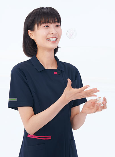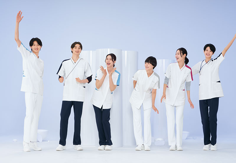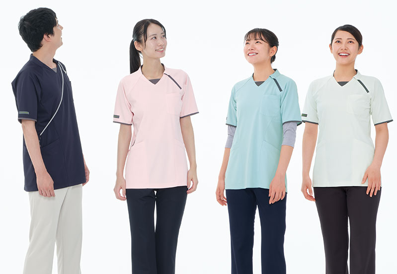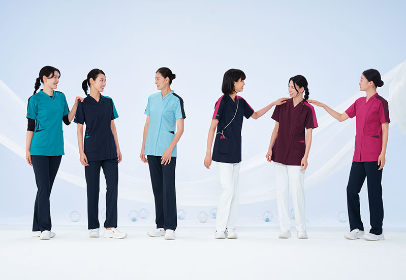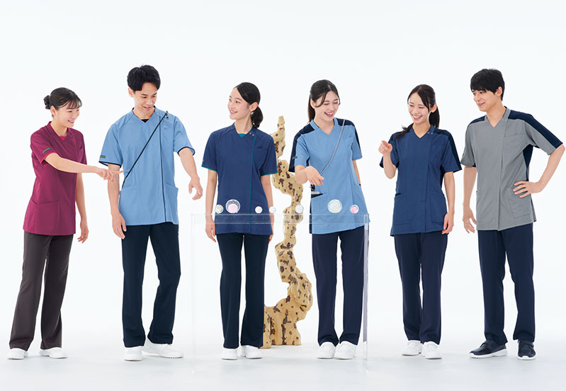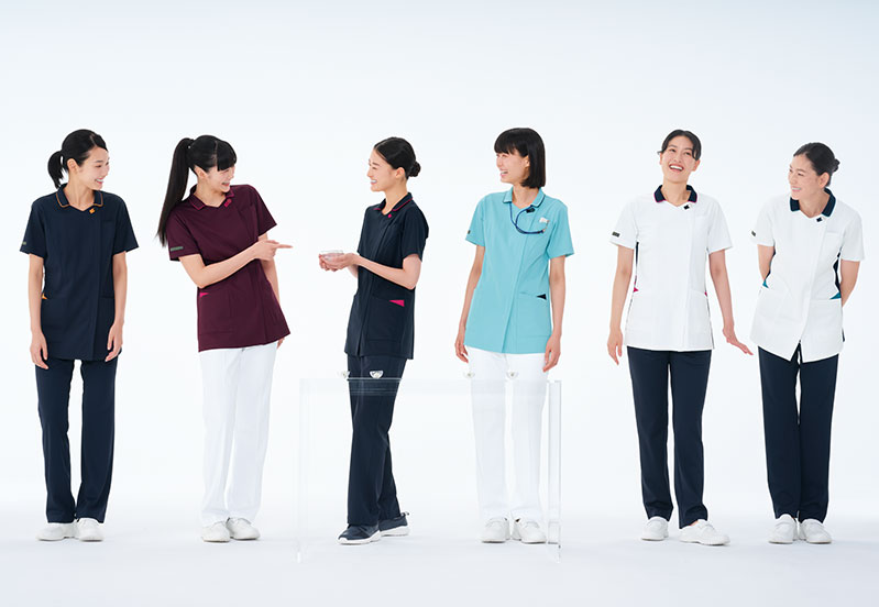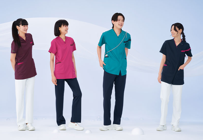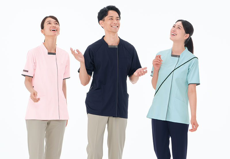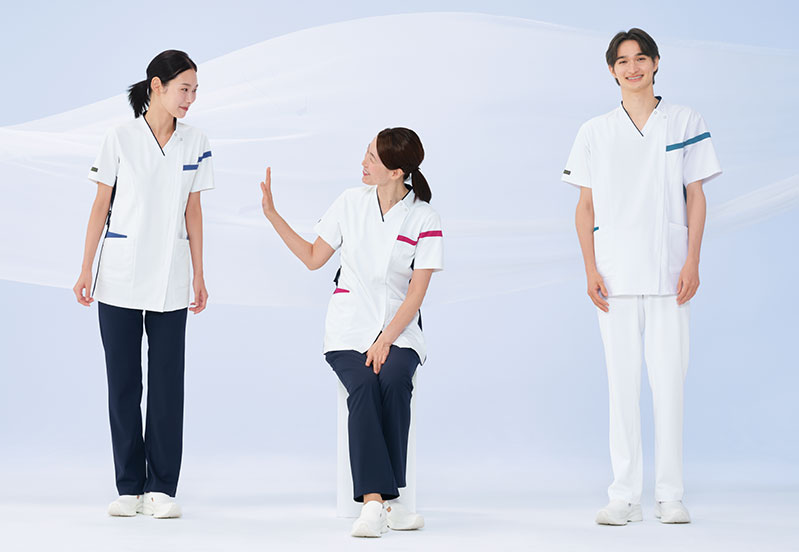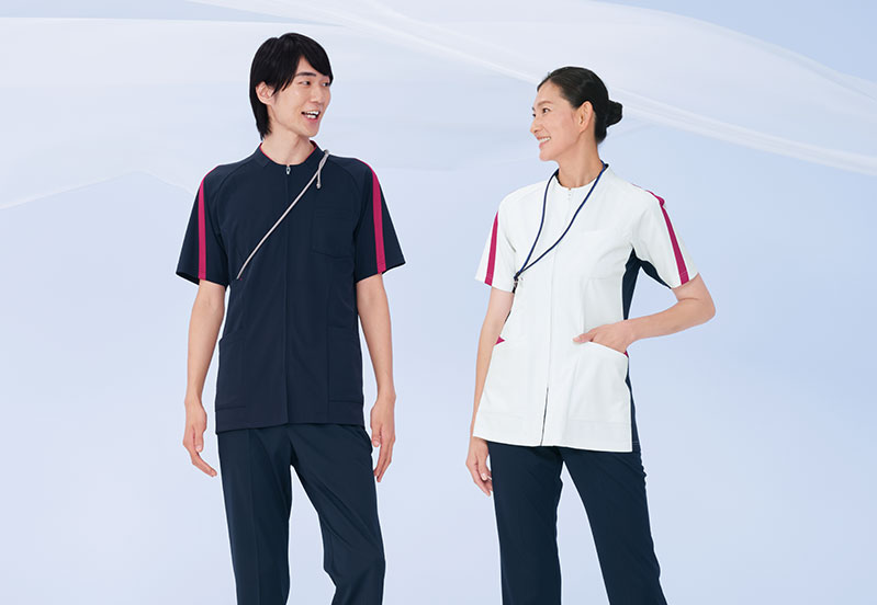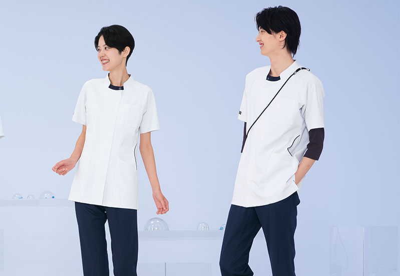 体を酷使する医療従事者が纏うユニフォームに求められる機能を限界まで探求するブランド、プロファンクション。 肩周りの動作を限りなくストレスフリーにし、また衣服内の空気を循環させて温湿度を低 下させるシステムを確立しました。着用すると実感できる快適さをご提供いたします。